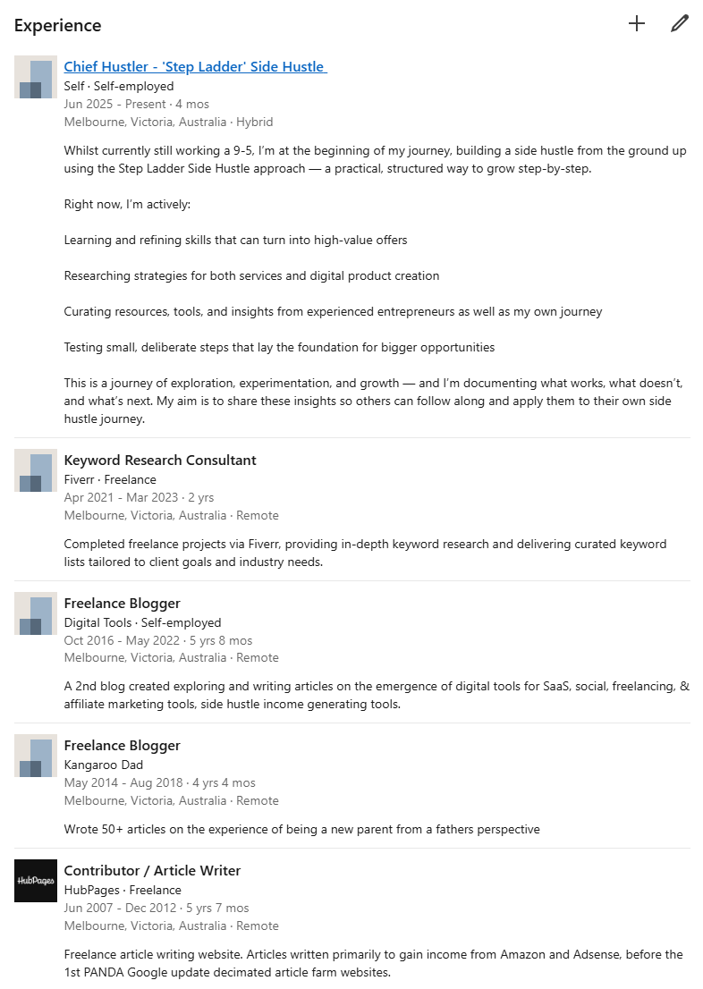 Since 2007, I've been side-hustling—not for great profit, but to gain invaluable experience that’s shaped my approach.